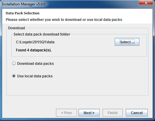 licensing.loqate.com. If the license key is valid, the server will return the corresponding license pack to Install Manager and then Install Manager will write the license pack to the installation folder. Choose the option to download the datapacks.