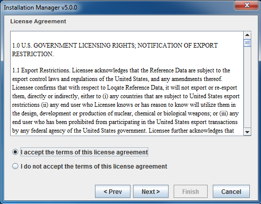 Install Manager will display the contents of the license for reference.