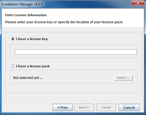 - Run Install Manager using License key