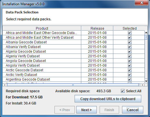 licensing.loqate.com and fetch details about the latest available licensed data packs that are compatible with the Local API version that is currently installed. The details of available data packs to install will be shown next. In the case a user selects an existing data folder for installation, it will show newer data packs available to download and install. The release date of the available data packs will also be displayed. The user can select the required data packs from this screen by checking the checkboxes next to each product.