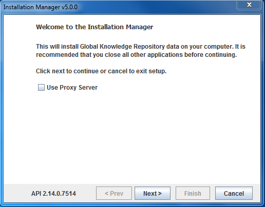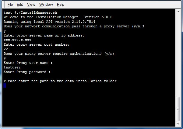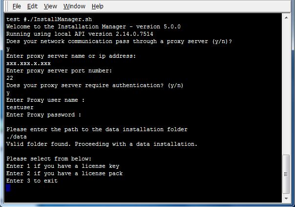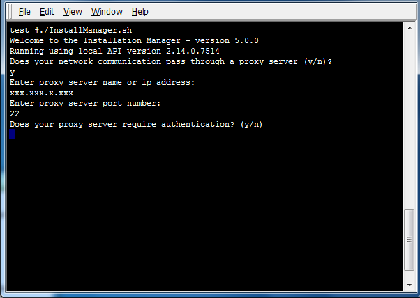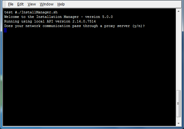 Install Manager can be started in command line mode by providing the command line option:mode=commandline. Command line mode is the default in Linux and UNIX platforms. On Linux/Unix platforms, Install Manager can be launched by running the script InstallManager.sh. The first screen displays the version of the Local API currently installed.