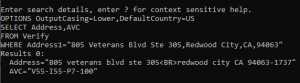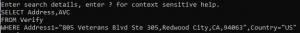 TheFROM prompt is used to select the tool of choice, i.e. Verify, Geocode, etc. You can enter ? to obtain quick help (this can be used at any of the prompts).