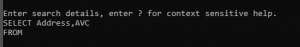 TheSELECT prompt is used to specify the Loqate output fields to be displayed for the query. To display the quick help menu, enter ? (this can be used at any of the prompts).